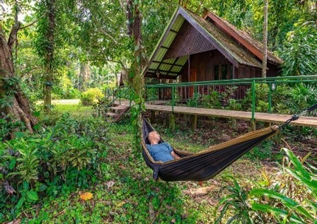 Fly to Krabi and continue to Khao Sok National Park, a paradise of limestone cliffs and jungle rivers. Check in at Khao Sok Riverside Cottages.