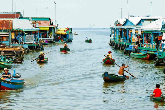早晨: 在酒店享用早餐。乘坐私人传统木制新鲜空气船游览,参观当地人的日常生活 水上村庄 洞里萨湖 您可以探索水上市场、水上房屋、水上学校以及渔民的其他有趣活动。